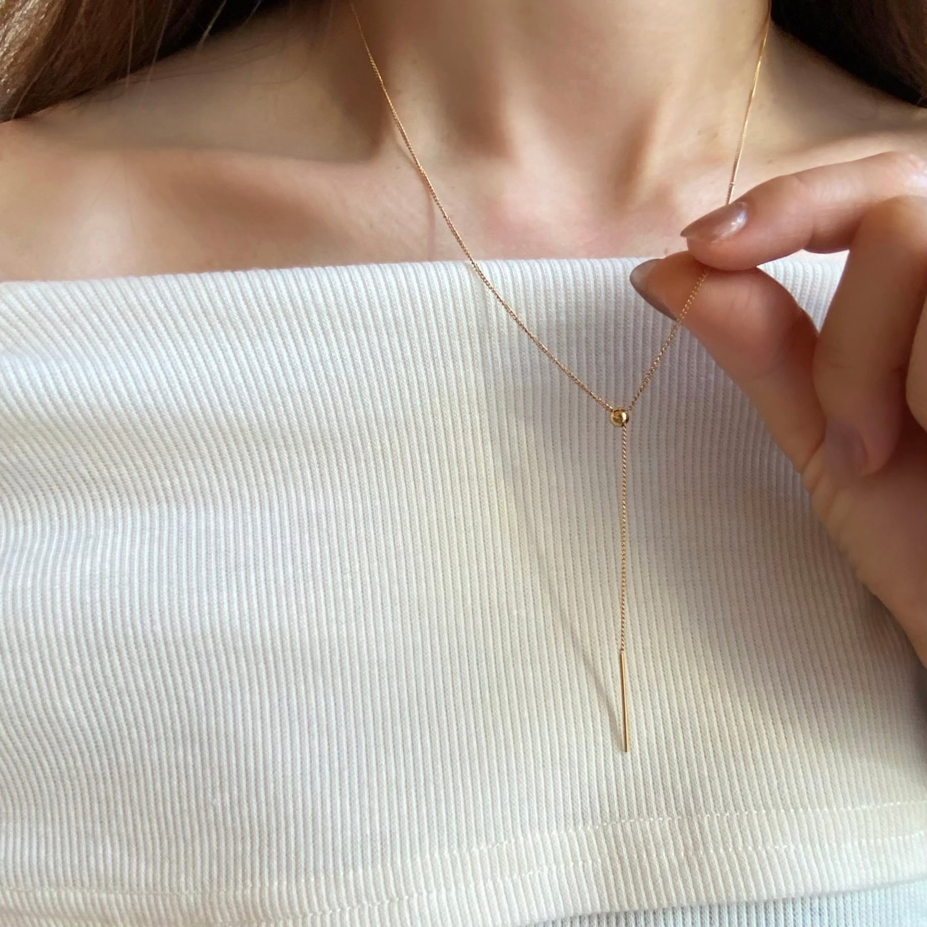 シンプルなデザインと華奢なチェーンは